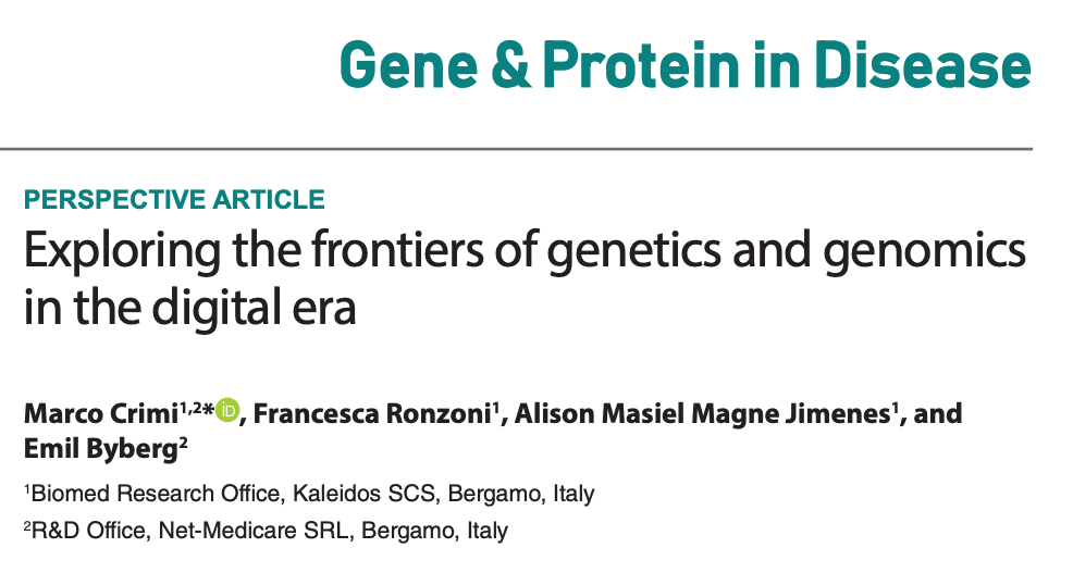 Siamo lieti di annunciare la pubblicazione del nostro ultimo articolo scientifico, Exploring the frontiers of genetics and genomics in the digital era, recentemente reso disponibile dalla rivista Gene & Protein in Diseases.